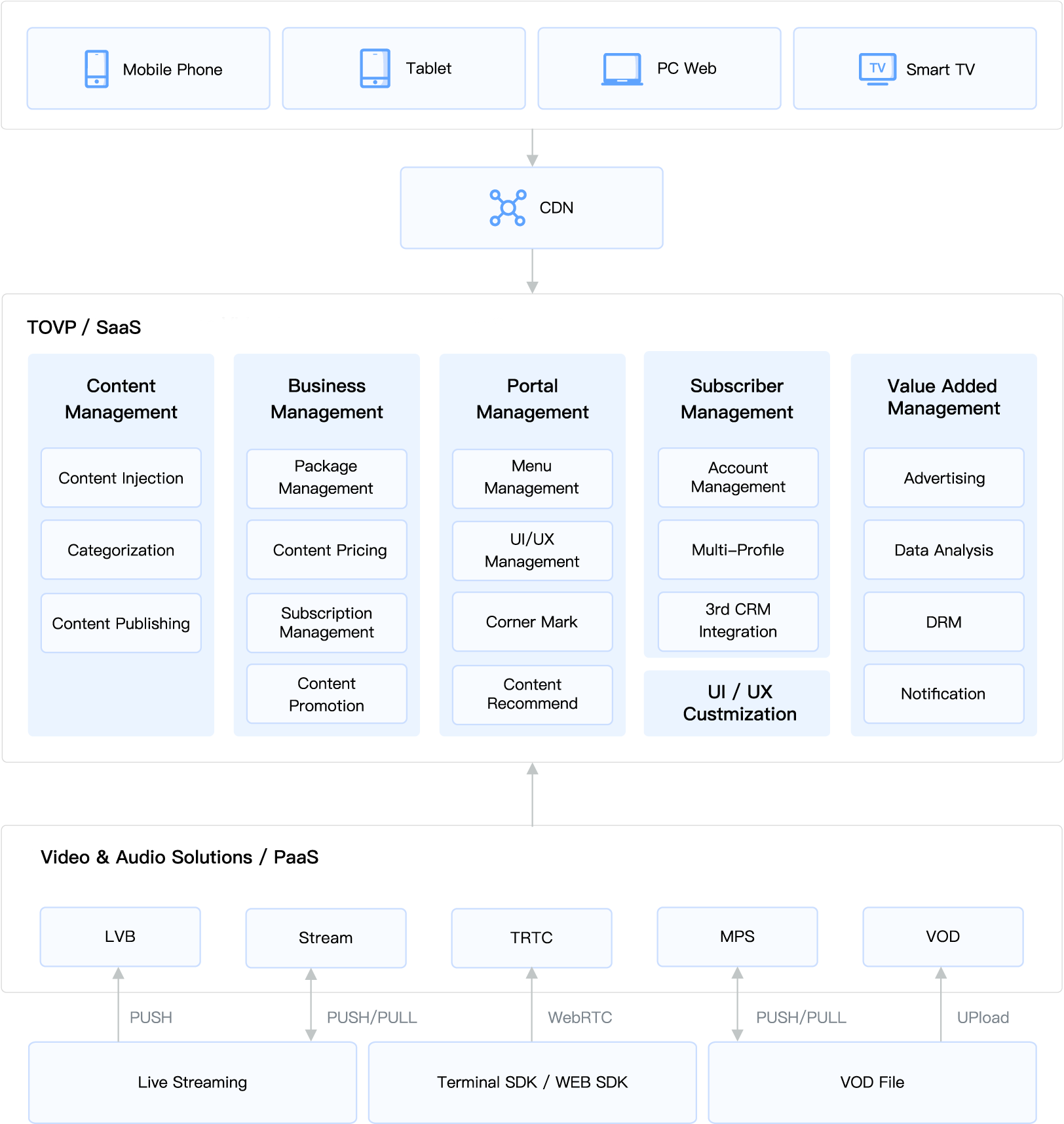 TOVP可以提供基於雲的一站式解決方案,幫助在線影音平台拋開技術麻煩,更專注於業務本身。
